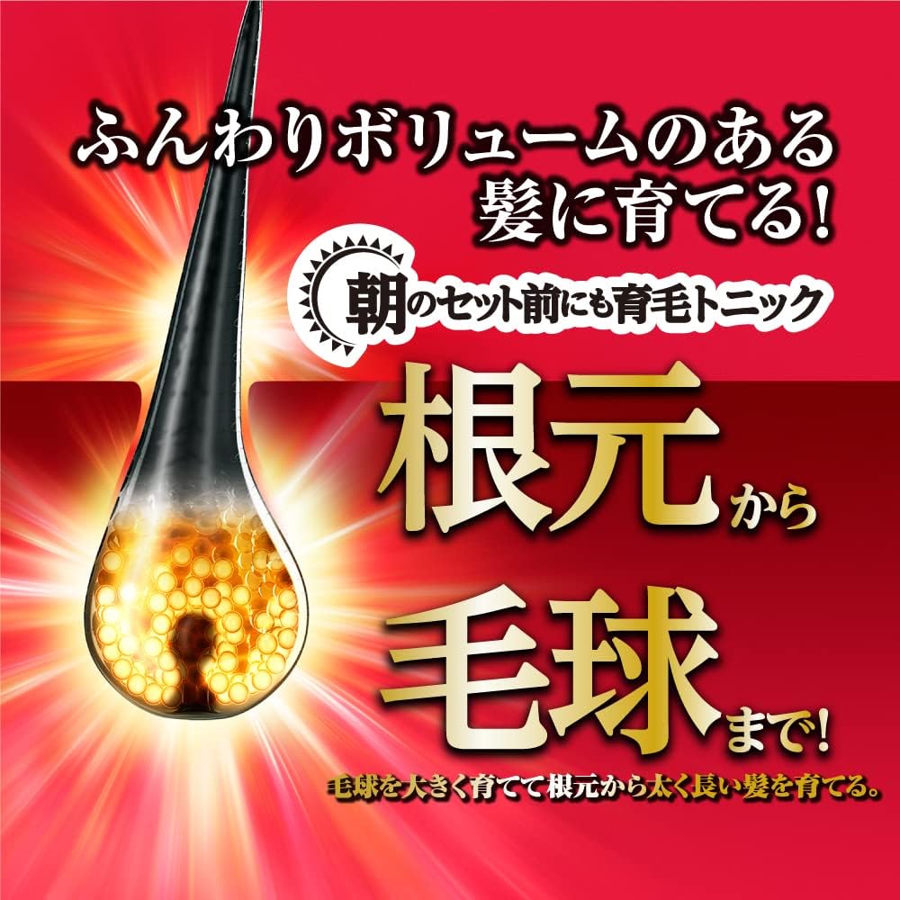 The proprietary developed ingredient "t-Flavanon*1" works with the hair bulbs deep in the roots and grows from the roots to the thicker, long and voluminous hair.