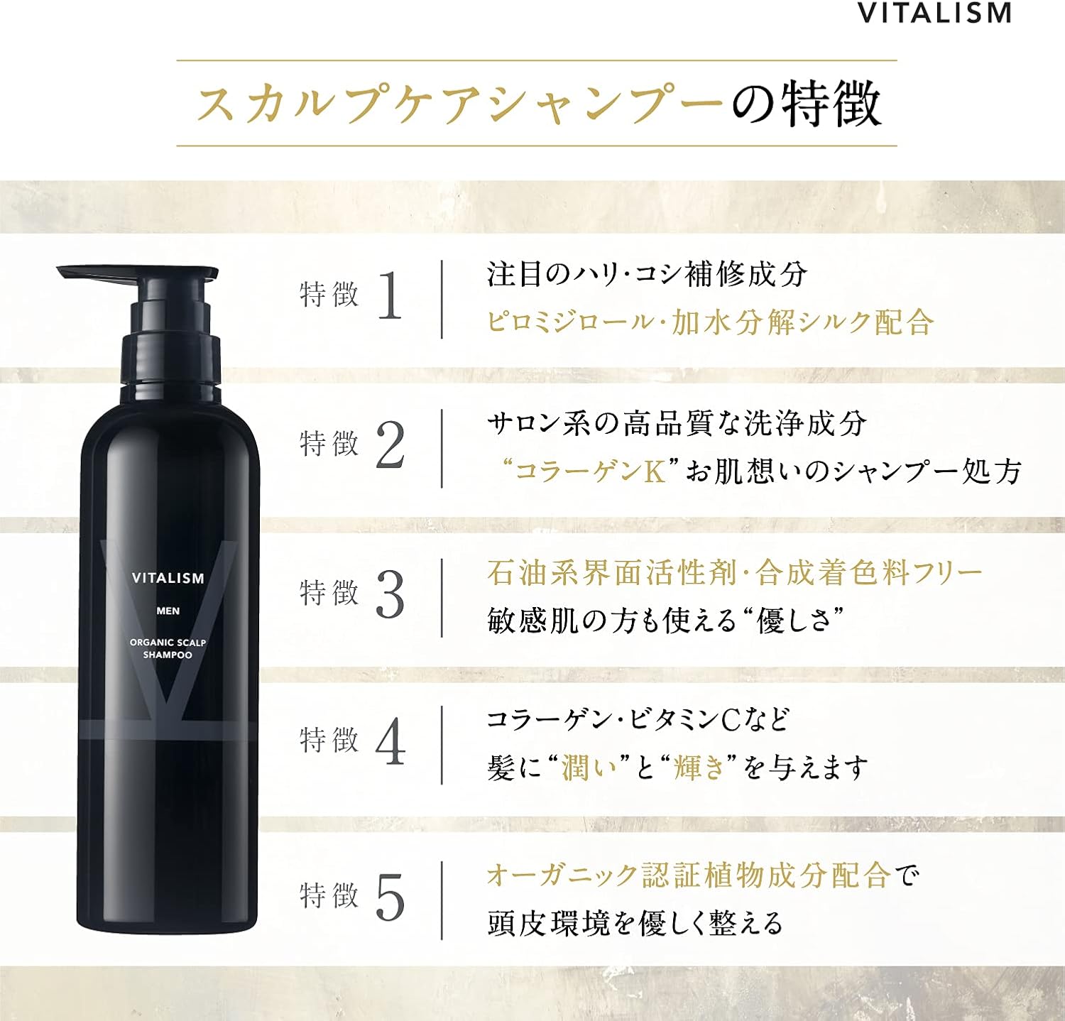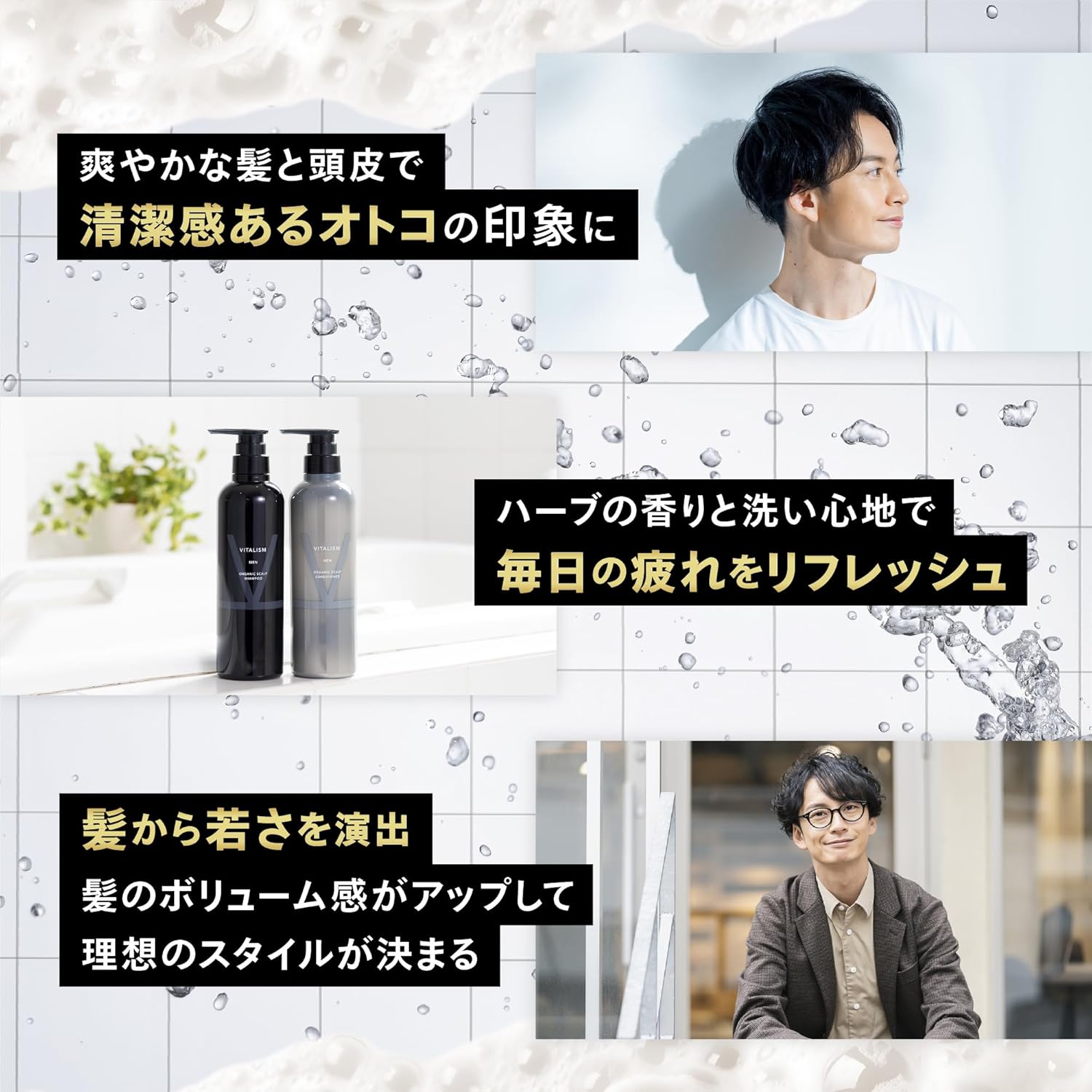 Vitalism Scalp Care Shampoo & Conditioner Set, 16.9 fl oz (500 ml) each, Men's, Scalp Care, Born From the Thought of Clinics, International Organic Certified Ingredients, For Men, Large Capacity, Pump