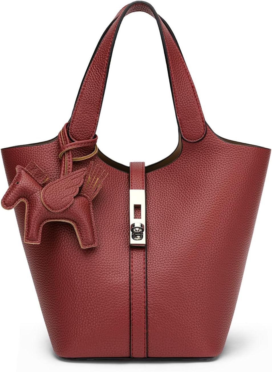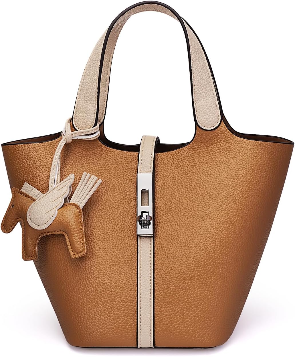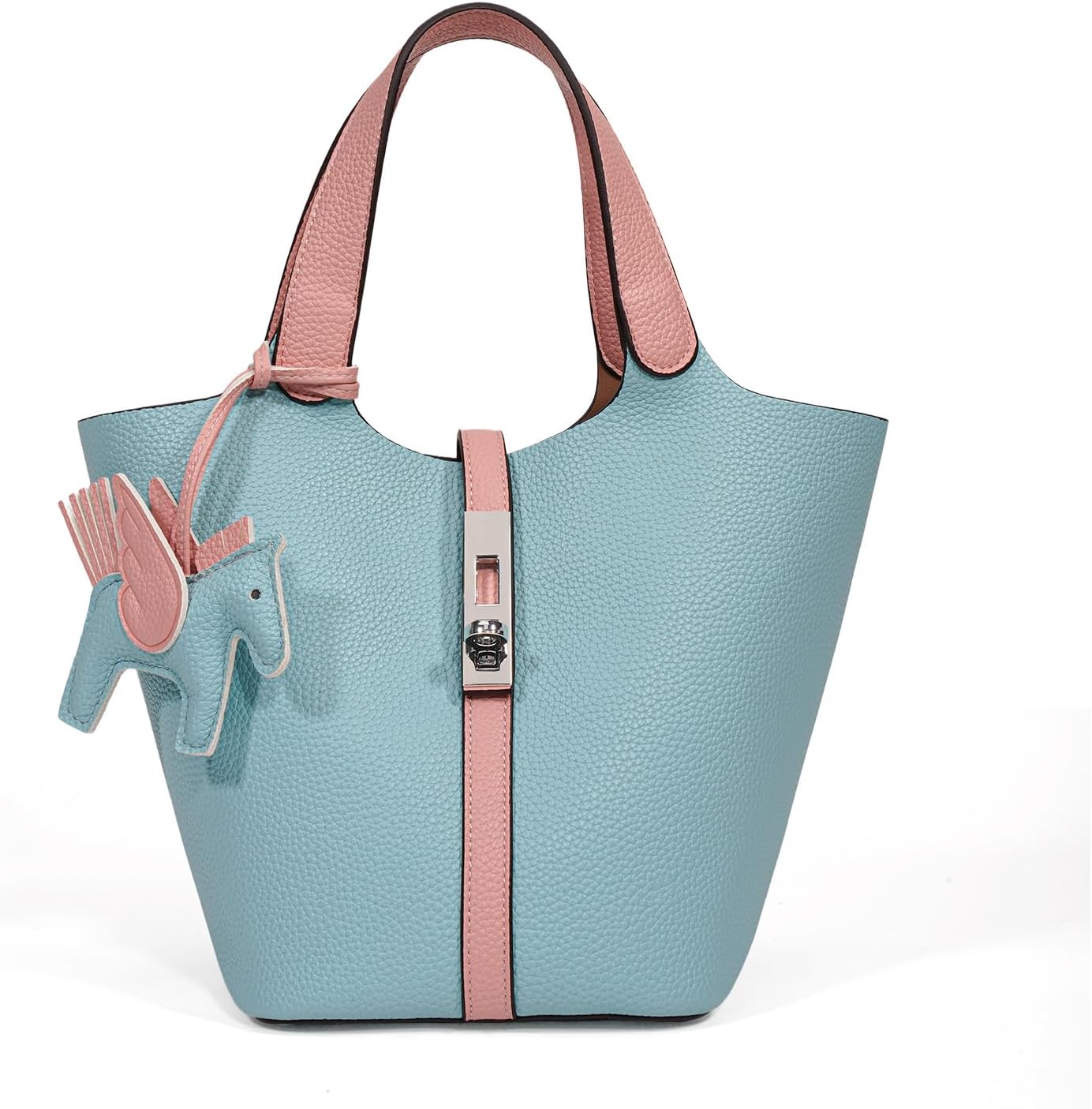 Functional tote bag for everyday use. This faux leather women's bag was developed to support the everyday life of a busy woman. Lightweight with storage capacity. Large capacity design, yet the leather material is lightweight and easy to carry. User-friendly Independent inner pocket with zipper for outstanding security. The charms are removable so you can change your style according to your mood in the day. Perfect as a gift for Mother's Day, birthdays, and anniversaries