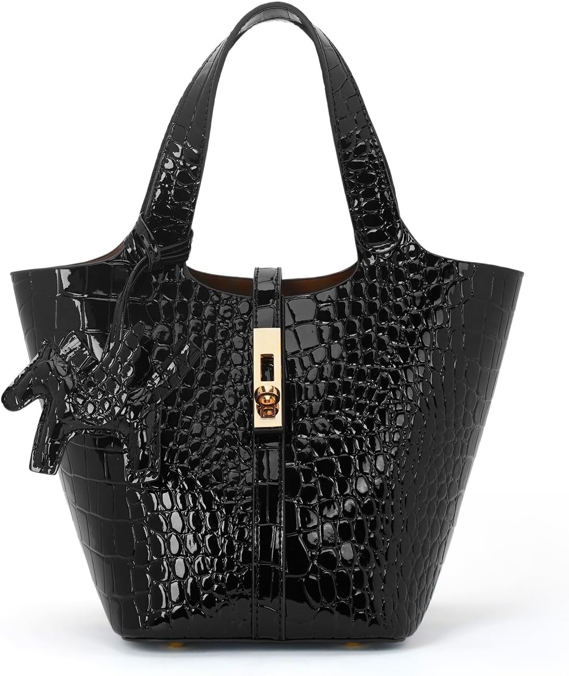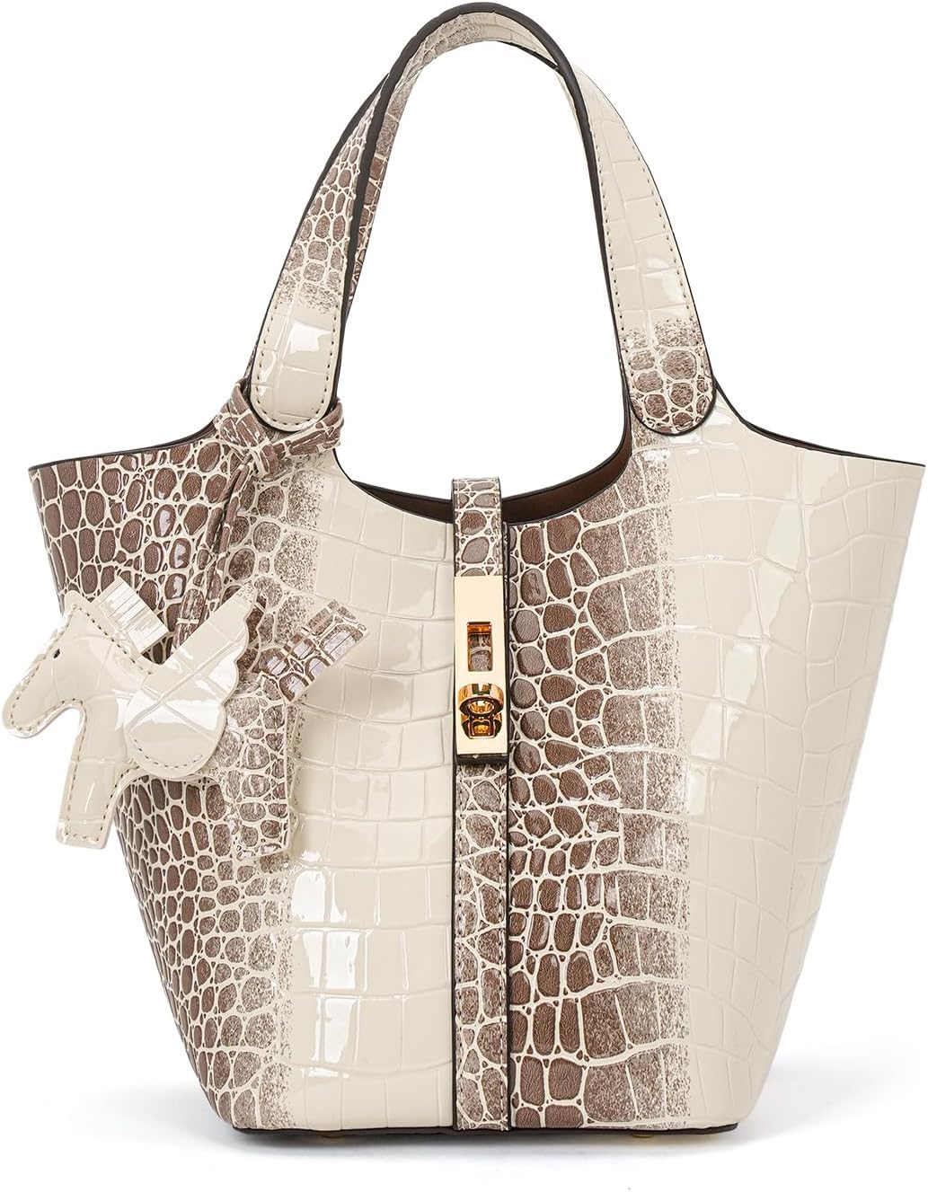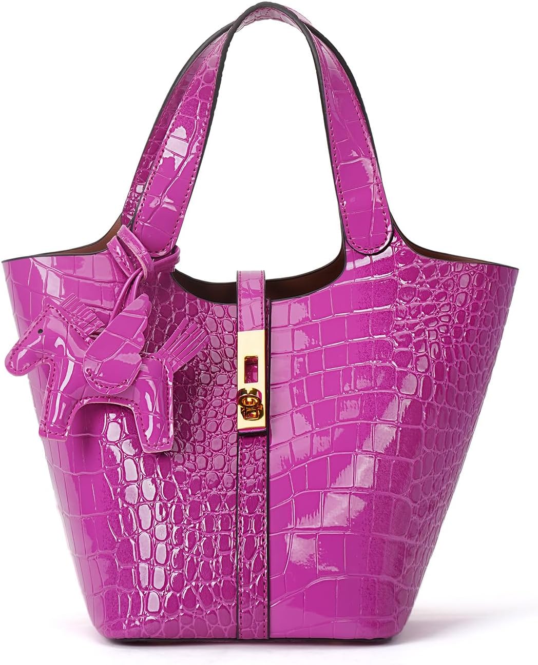 Functional tote bag for everyday use. This faux leather women's bag was developed to support the everyday life of a busy woman. Lightweight with storage capacity. Large capacity design, yet the leather material is lightweight and easy to carry. User-friendly Independent inner pocket with zipper for outstanding security. The charms are removable so you can change your style according to your mood in the day. Perfect as a gift for Mother's Day, birthdays, and anniversaries