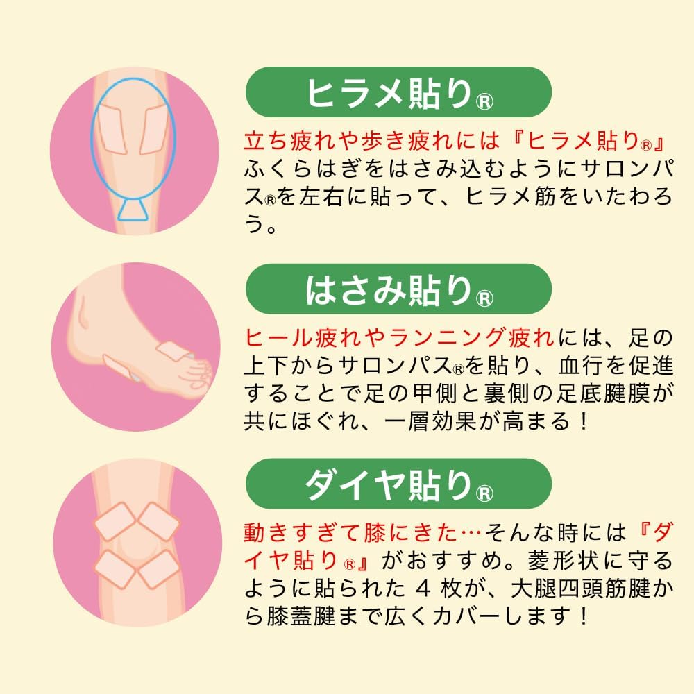 . Salonpass Ae contains ingredients such as vitamin E, which promotes blood circulation, and methyl salicylate, which helps reduce inflammation and relieve pain.