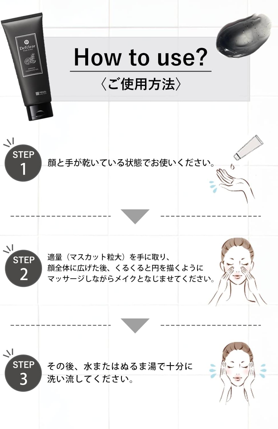 Keep your face and hands dry. Take an appropriate amount (mascat granules) and spread across the entire face and massage in a circular motion to blend with makeup. Then rinse thoroughly with cold or warm water