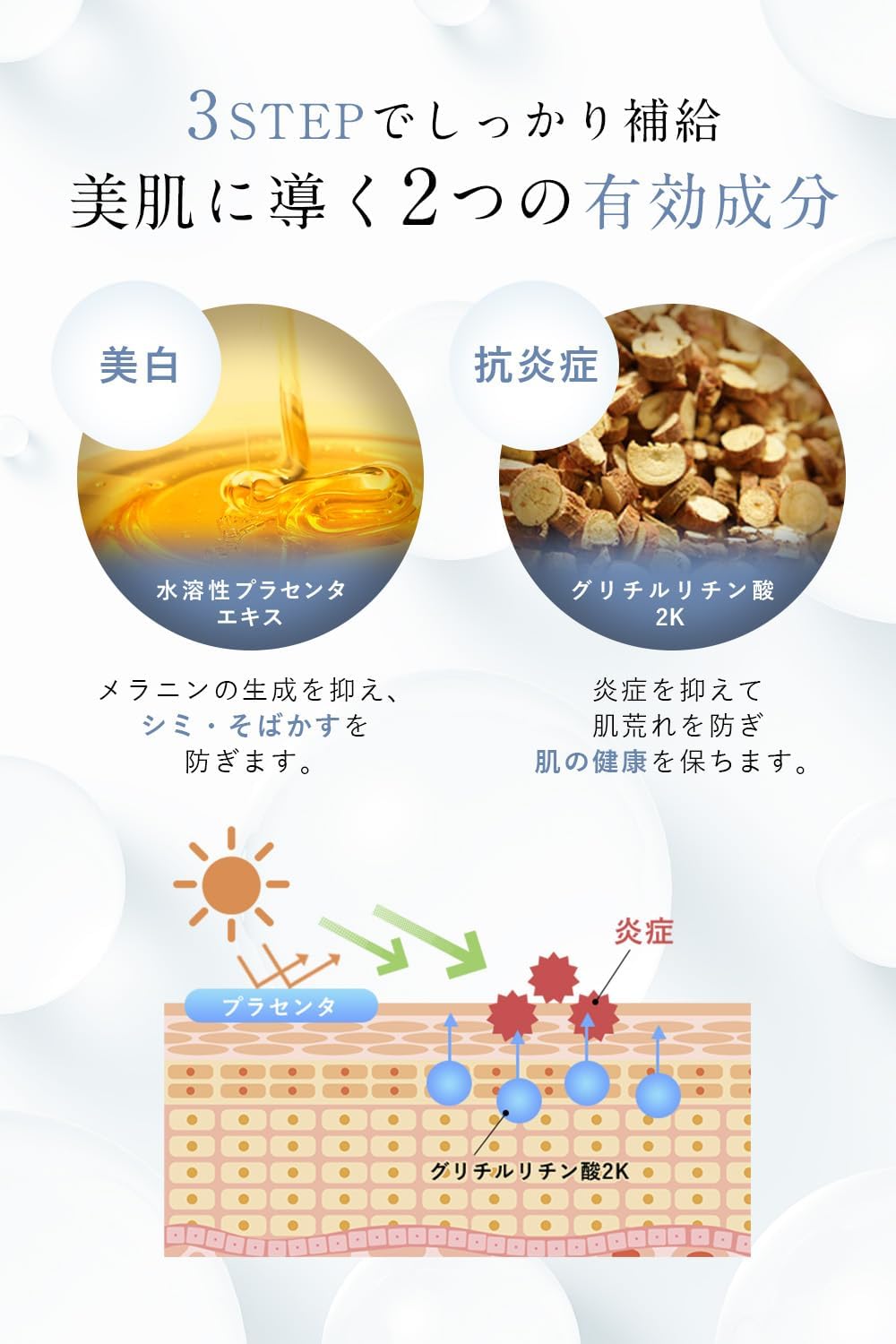 Stain Protection: This is a non-medicinal product containing 2 types of active ingredients approved by the Ministry of Health, Labor and Welfare. It suppresses melanin production and prevents stains and freckles, suppresses skin problems such as "water-soluble placenta extract" and acne and keeps your skin healthy, and aims to beautify your skin