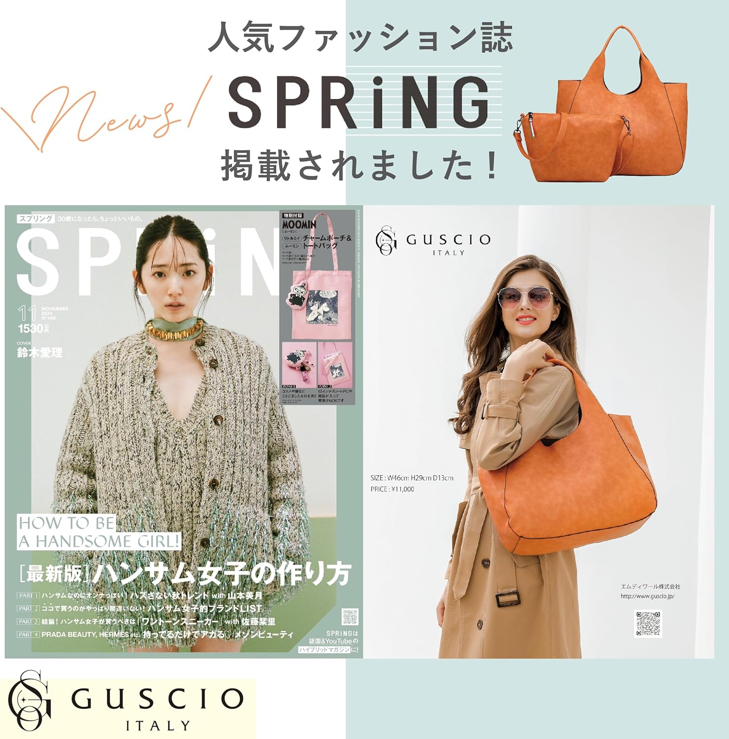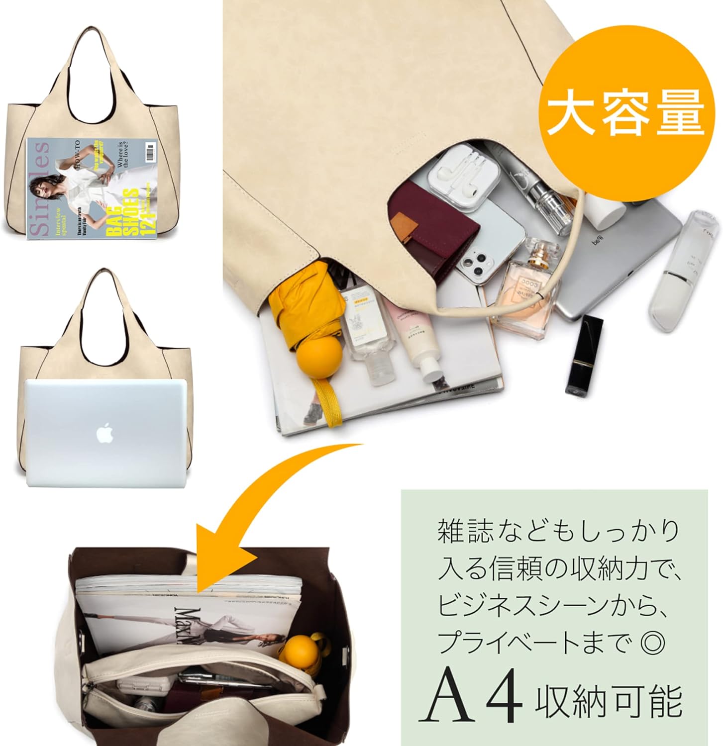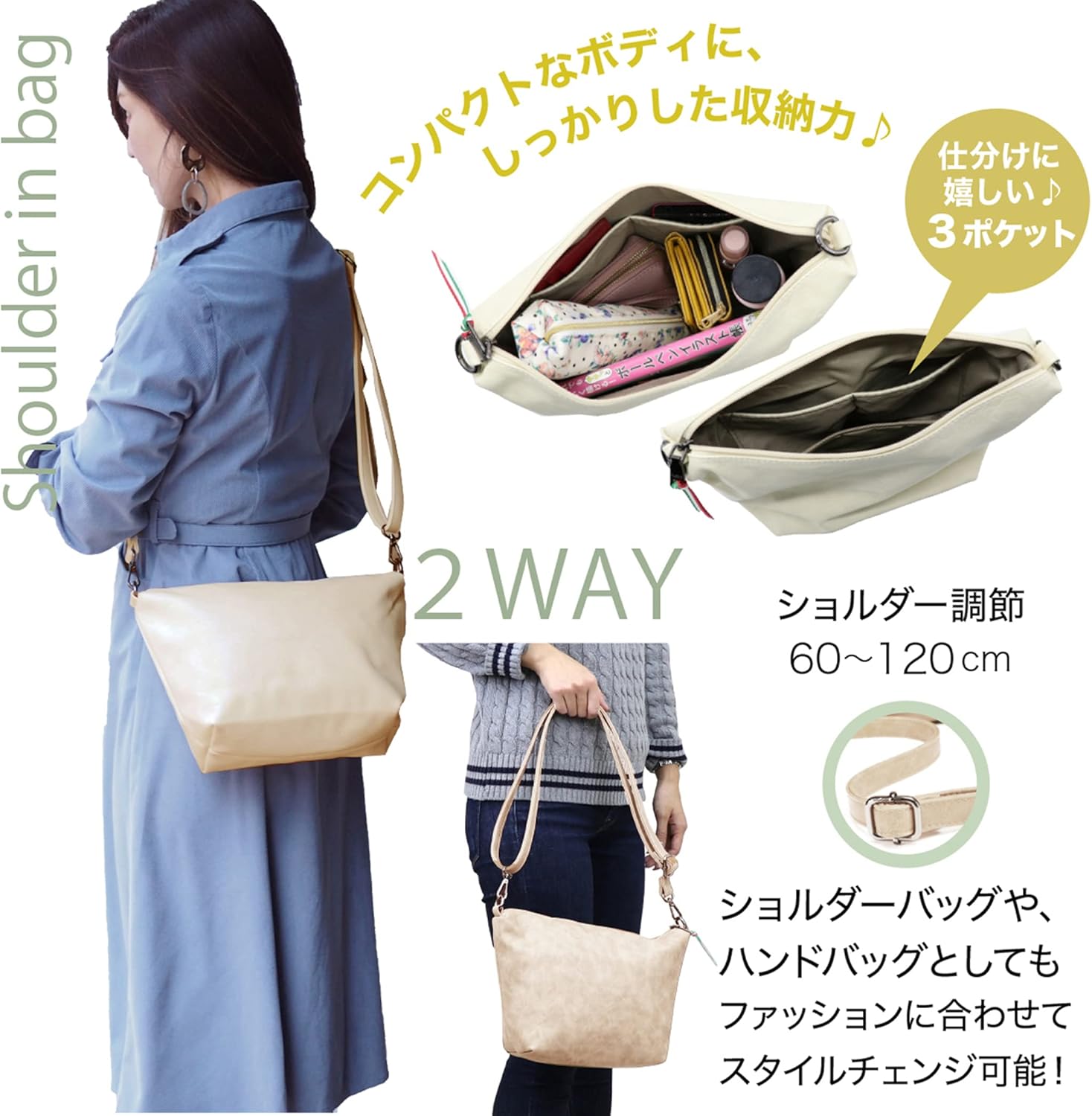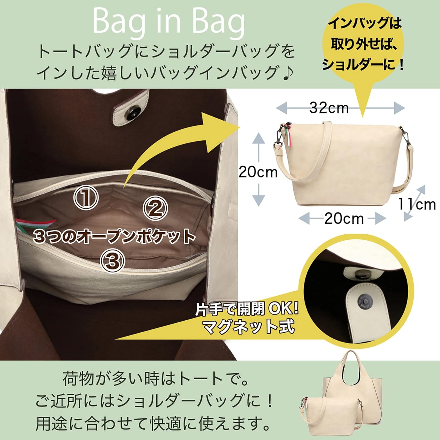 Gusio Basic 120486 Women's 3-Way Tote Bag x Shoulder Bag in Bag Set, PU Leather, Lightweight, A4 Compatible