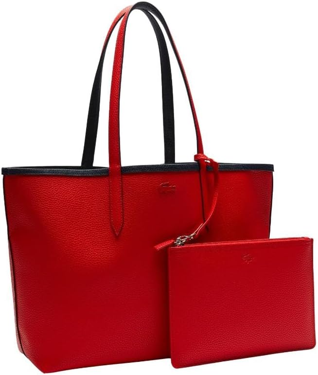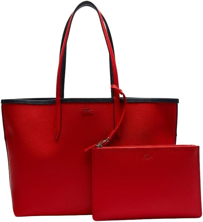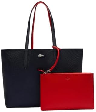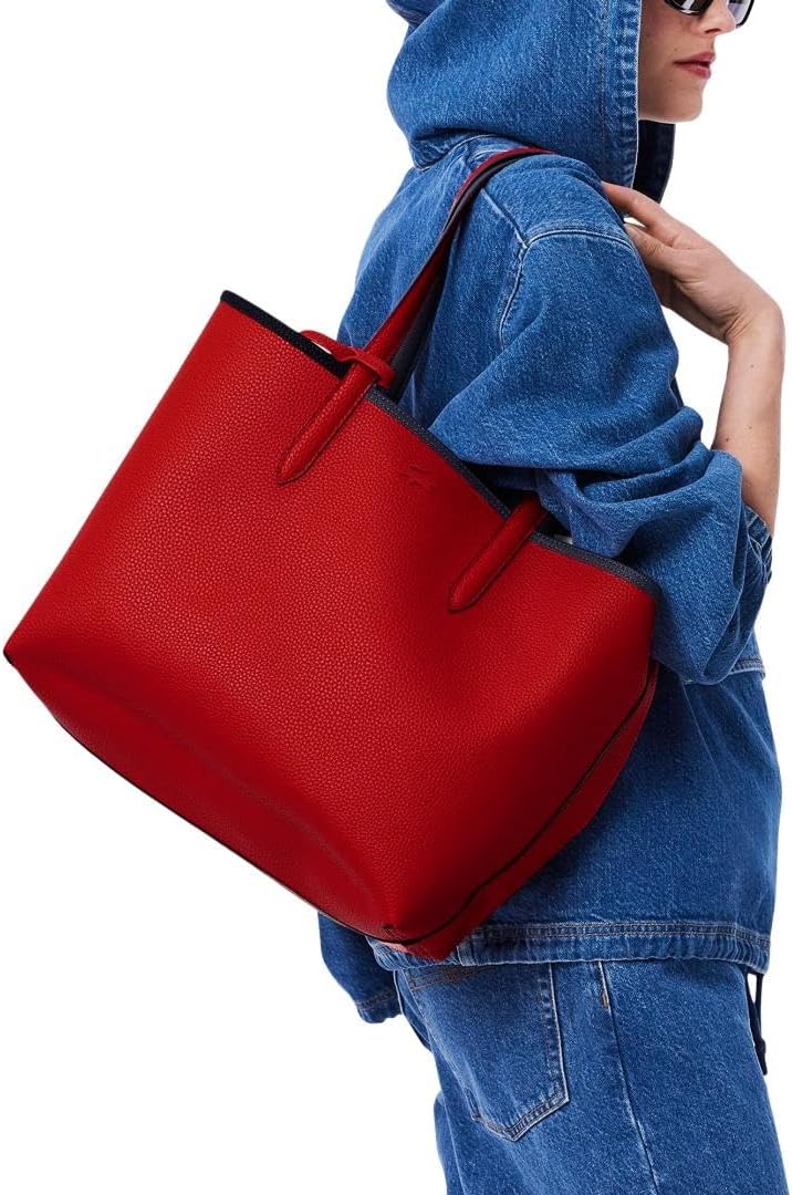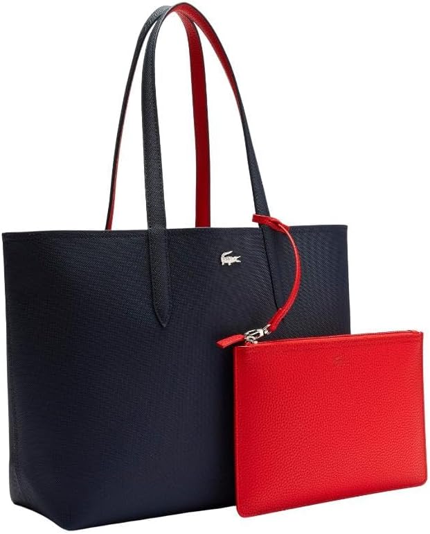 Lacoste Anna Reversible Tote Bag with Pouch is a versatile, stylish accessory designed for the modern woman on the go. This reversible two-tone tote offers the flexibility to change the look with a pique embossed side reflecting the iconic L.12.12 polo and grained sides for a more textured, sophisticated look. Roomy enough to carry a 15" laptop and features a removable zippered pouch perfect for organizing your small items. The metal crocodile logo on one side of the tote showcases Lacoste's signature elegance, and is made of durable PVC, making it lightweight and easy to maintain. For work, travel, and everyday errands, the Anna Reversible Tote combines functionality and chic design. Biennois Grenadine Color