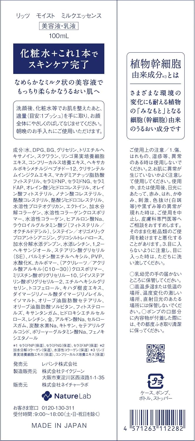 Formulated with plant stem cells (*1), ceramide (*2) and collagen (*3) for a plump milk-like serum After applying lotion, use this one bottle to make a serum and emulsion. Even with densely moisturized, it provides a soft, moisturizing skin. Unscented