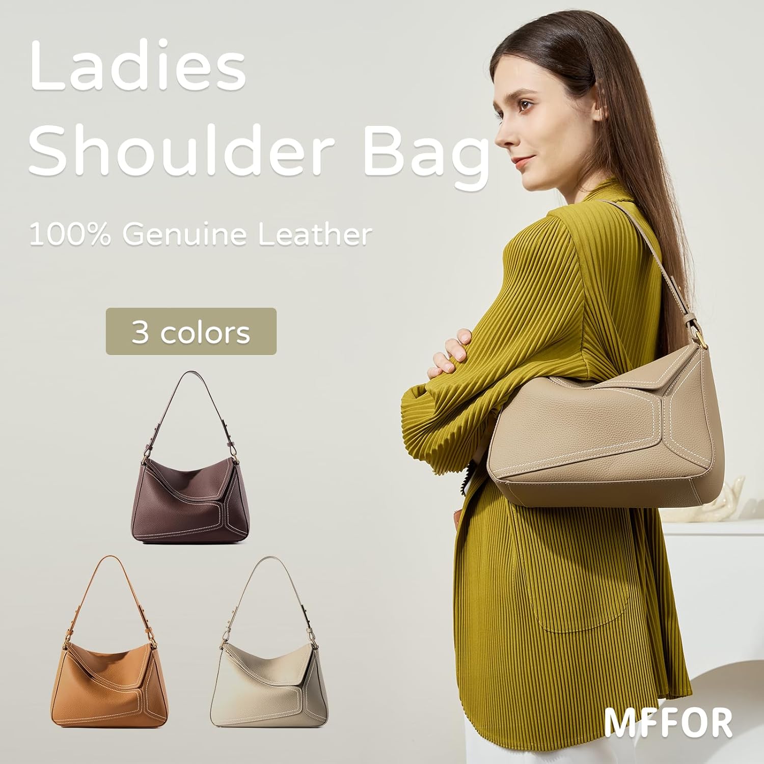 MFFOR Women's Shoulder Bag, Genuine Leather, Handbag, Large Capacity, 2 Belts, Business Bag, Shoulder Bag, Handheld, High Visibility, Office, Work, Simple, Casual, Stylish, Popular