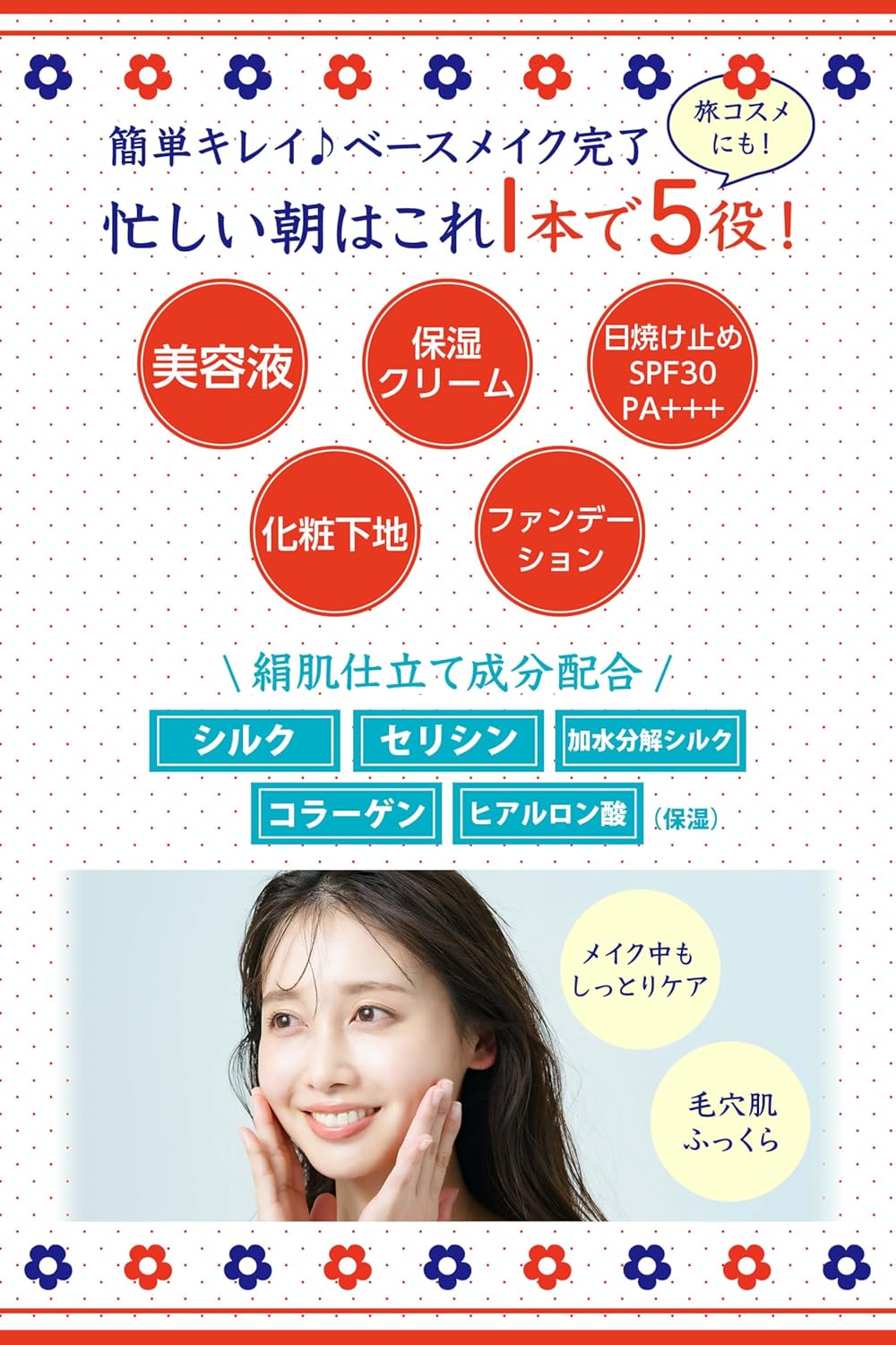 Where's pores? BB cream that will disappear pores. If you apply a cream made with a silky skin, you can instantly clean and moisturize your skin. Even if you wear it dimly, it will cover you well. Smooth and beautiful skin for a long time. Tailored silk ingredients (moisturizing): silk, sericine, hydrolyzed silk, collagen, hyaluronic acid, SPF 30, PA+++, pink ochre