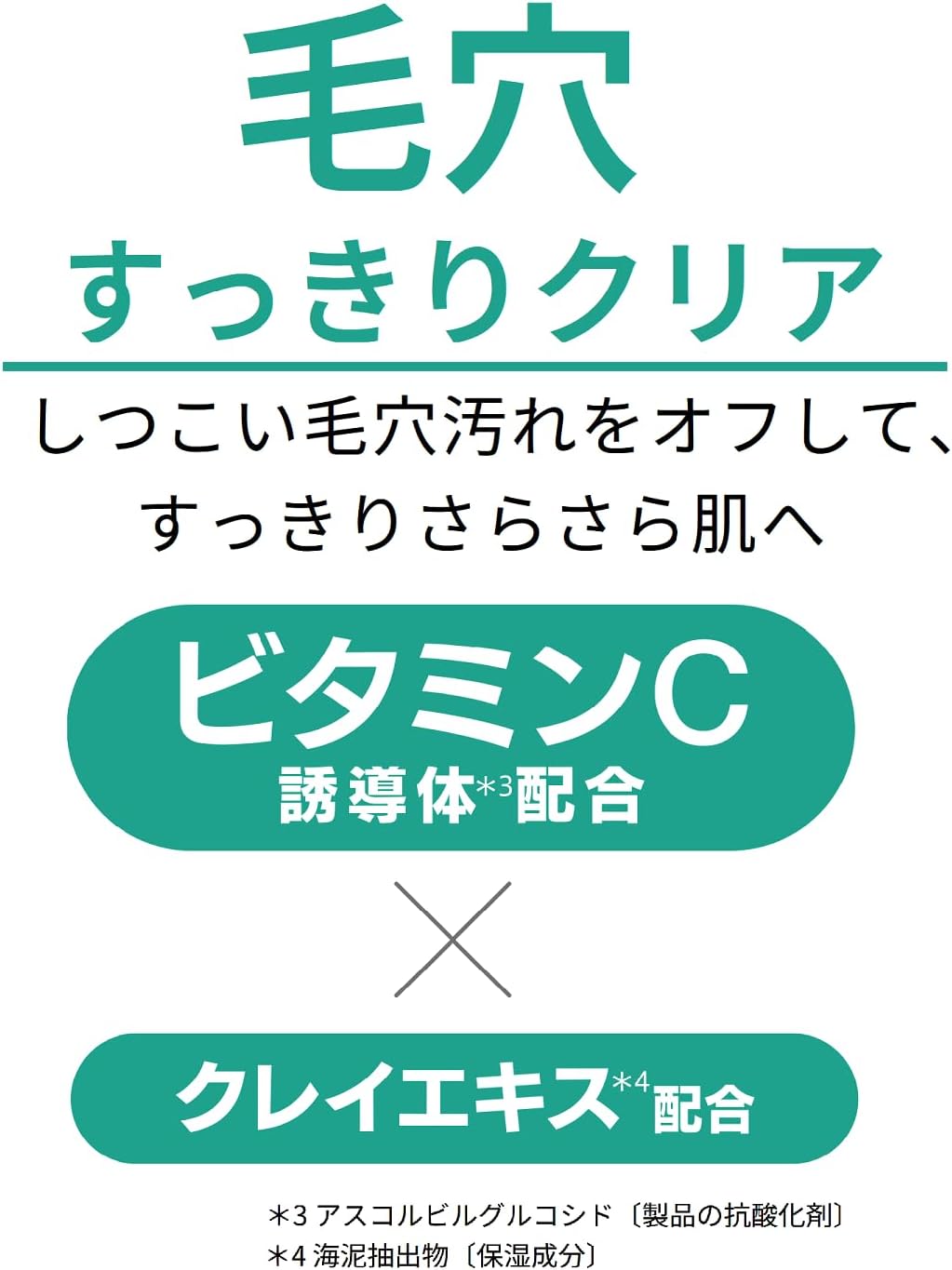 • ✅【Formulated with Vitamin C Derivative*1 x Clay Extract*2】Cares for oil and blackheads*3 in pores, leaving skin*4 smooth and pore-free (*1 Ascorbyl Glucoside [Product Antioxidant] *2 Sea Mud Extract [Moisturizing Ingredient] *3 Old Keratin *4 Skin Impression by Removing Dirt)