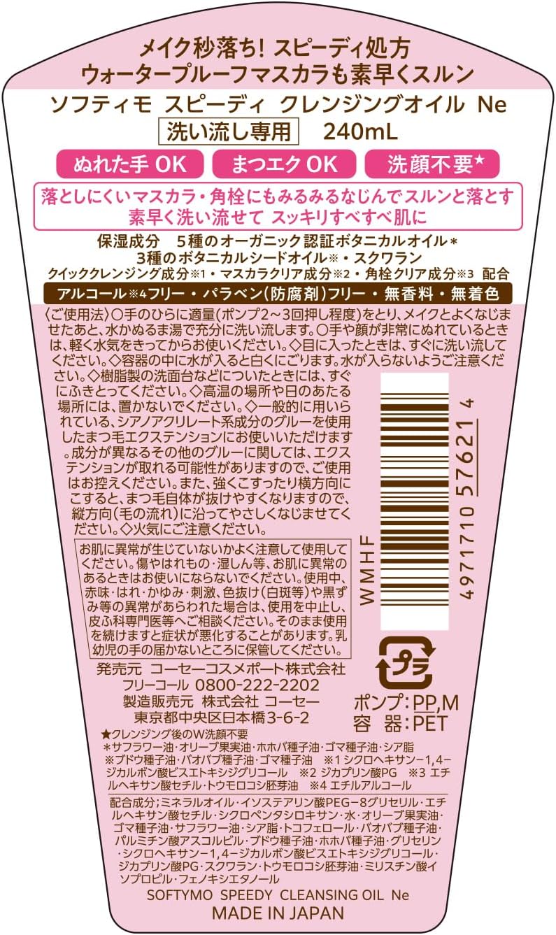 A speedy oil with 5 types of certified organic botanical oils (moisturizing) and 3 types of botanical seed oils (moisturized). Speedy formula for quick and smooth skin Wet hands, eyelashes, no need to wash your face.